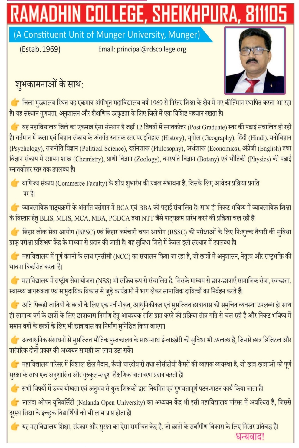(A Constituent Unit of Munger University, Munger)